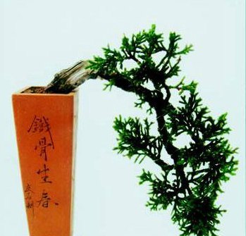 積很小,活動余地有限,因此更需要對種植位置的選擇加以重視,認真操作,精心調(diào)試。原本頗有特色的植株往往由于上盆選位不當而變得平庸無奇,反之,合理的