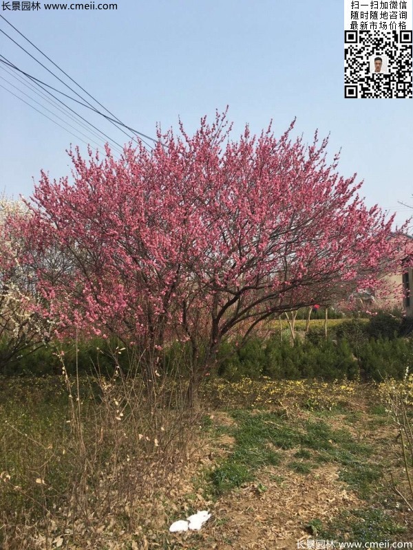 一般栽2-5年生大苗,栽植 方式可用孤植、叢植或群植。培植大面積的梅林、梅嶺或梅山時,應于陽坡或半陽坡栽種,株距3-5米?! ∫杳苡兄?,配置自然。經掘樹穴、施基肥后,再定植和澆透水,加強管理。梅樹整形,以自然開心形為宜。