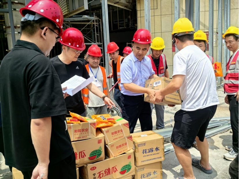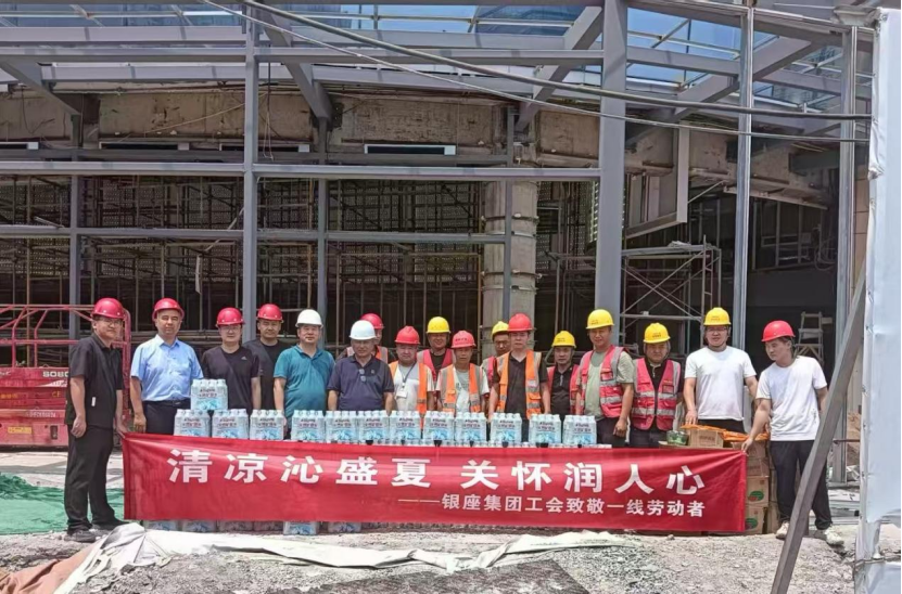 為切實(shí)保障各項(xiàng)目施工人員的健康與安全,7月12日,銀座集團(tuán)工會組織開展了“高溫送清涼·關(guān)愛潤人心”慰問活動,為銀座物流二期、濟(jì)南銀座茂、八澗堡及濟(jì)南和諧店等項(xiàng)目奮戰(zhàn)在高溫下的施工管理人員和一線工人送去清涼與關(guān)懷。