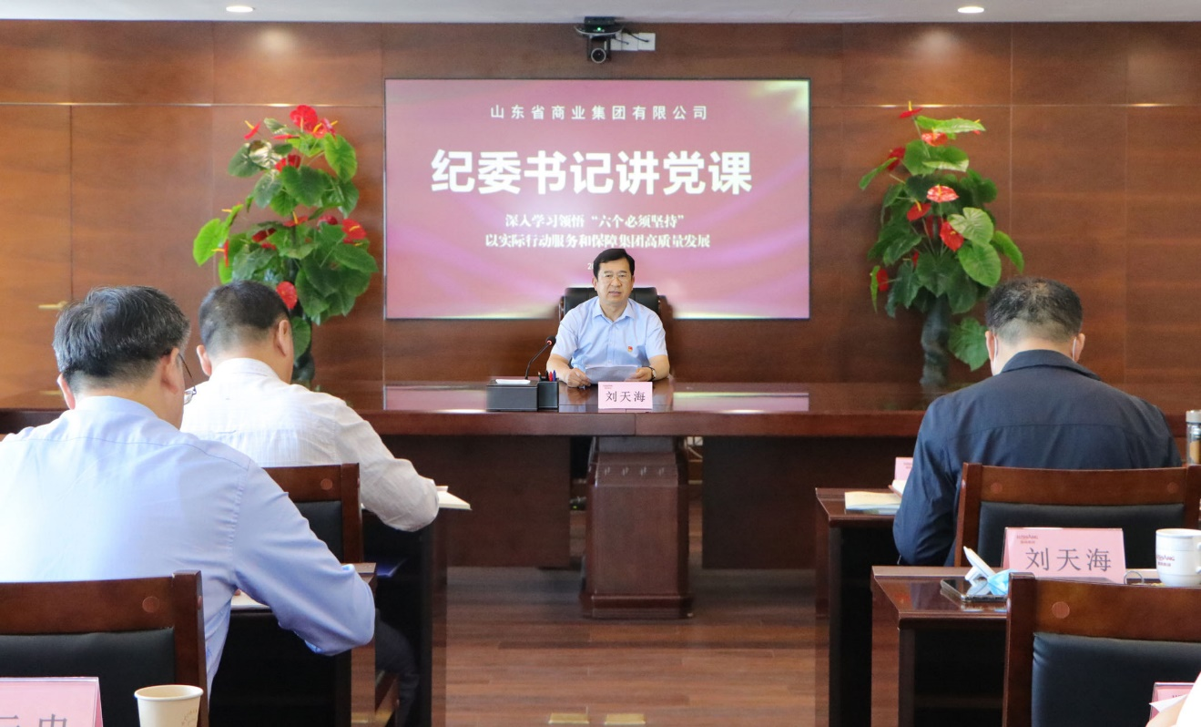 為扎實開展學習貫徹習近平新時代中國特色社會主義思想主題教育,6月5日,魯商集團黨委常委、紀委書記、省監(jiān)委駐集團監(jiān)察專員劉天海圍繞“深入學習領(lǐng)悟‘六個必須堅持’ 以實際行動服務(wù)和保障集團高質(zhì)量發(fā)展”為集團黨員干部講專題黨課。集團黨委書記、董事長王緒超,黨委副書記、董事劉守亮,黨委副書記、董事、副總經(jīng)理朱華建,黨委常委、董事、總審計師、工會主席劉德華參加,黨委常委、董事、組織人力資源部部長李林主持。