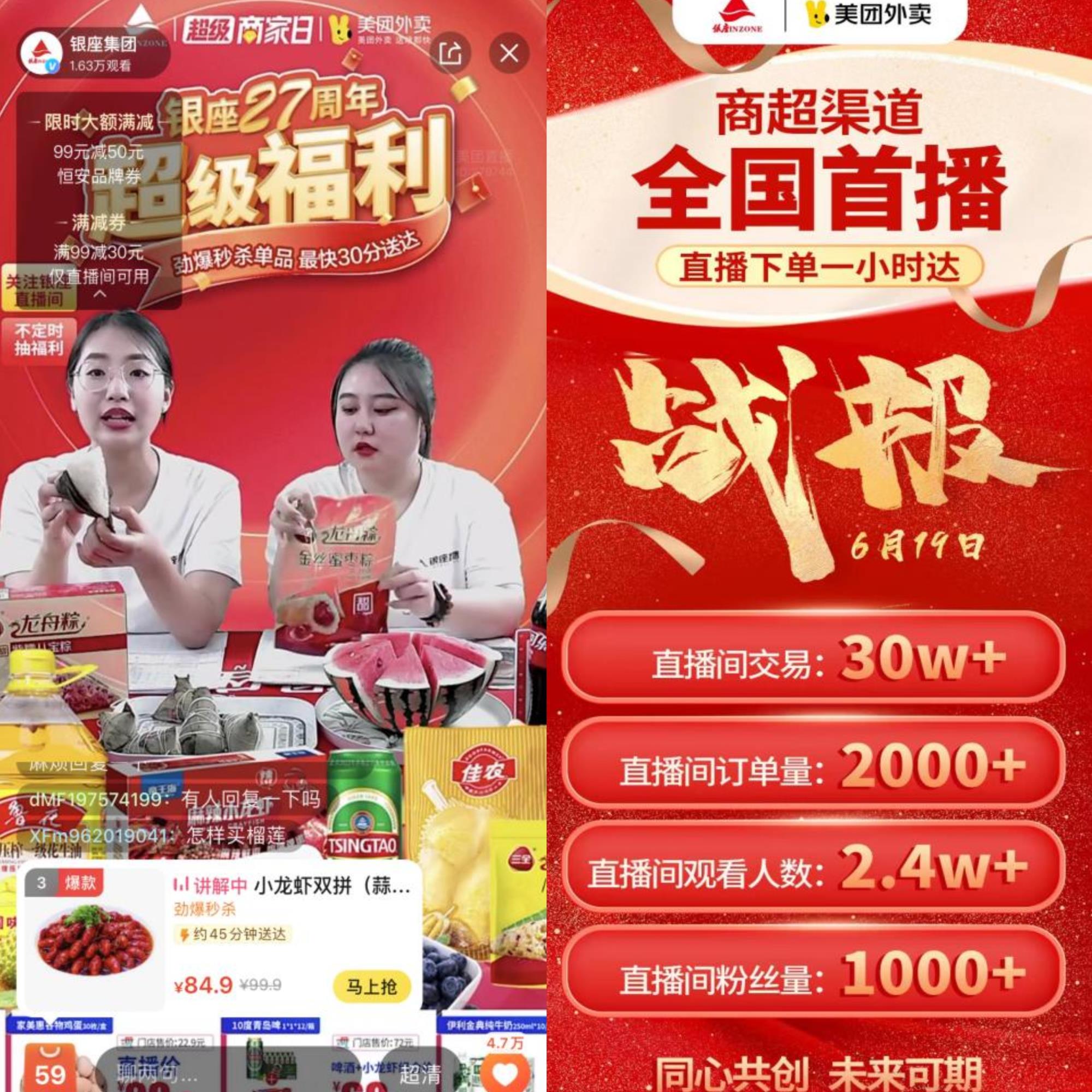 近日,為探索新場景營銷,打造“直播下單、一小時(shí)達(dá)”的即時(shí)零售新玩法,銀座集團(tuán)聯(lián)動美團(tuán)超市閃購組織開展首場直播活動。
