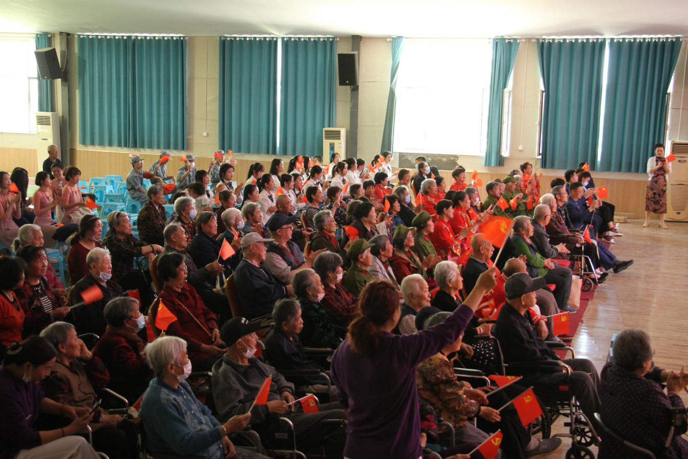 5月27日,省城市學(xué)院“唱著歌兒學(xué)黨史”黨史學(xué)習(xí)教育宣講團走進御花園老年養(yǎng)護中心,受到了御花園董事長宋華西和老人們的熱烈歡迎。學(xué)院黨委副書記刁洪斌以及高新區(qū)海天社區(qū)黨總支書記初君梅參與活動。