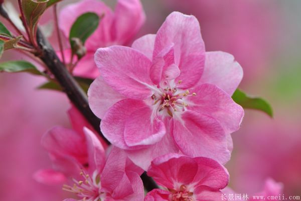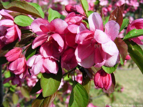 北美海棠還可與很多種喬木,落葉灌木,常綠地被,草花等等配合栽植成多種的景象,還能夠裝飾綠地,不僅增加了景象顏色,而且帶動了園林氛圍。中國有名的北美海棠園旅游景點有十堰、常州、六盤水、重慶、杭州等,隨著綠化家園在社會經濟發展,生態發展的重要地位,北美海棠目前已經成為各地區使用數量特別大的苗木品種。