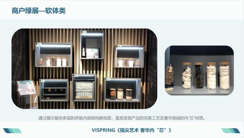 截至目前累計打造綠展點位268處,其中優(yōu)秀展陳31個品牌,通過綠色展陳助力商戶成交落單轉化680萬元。