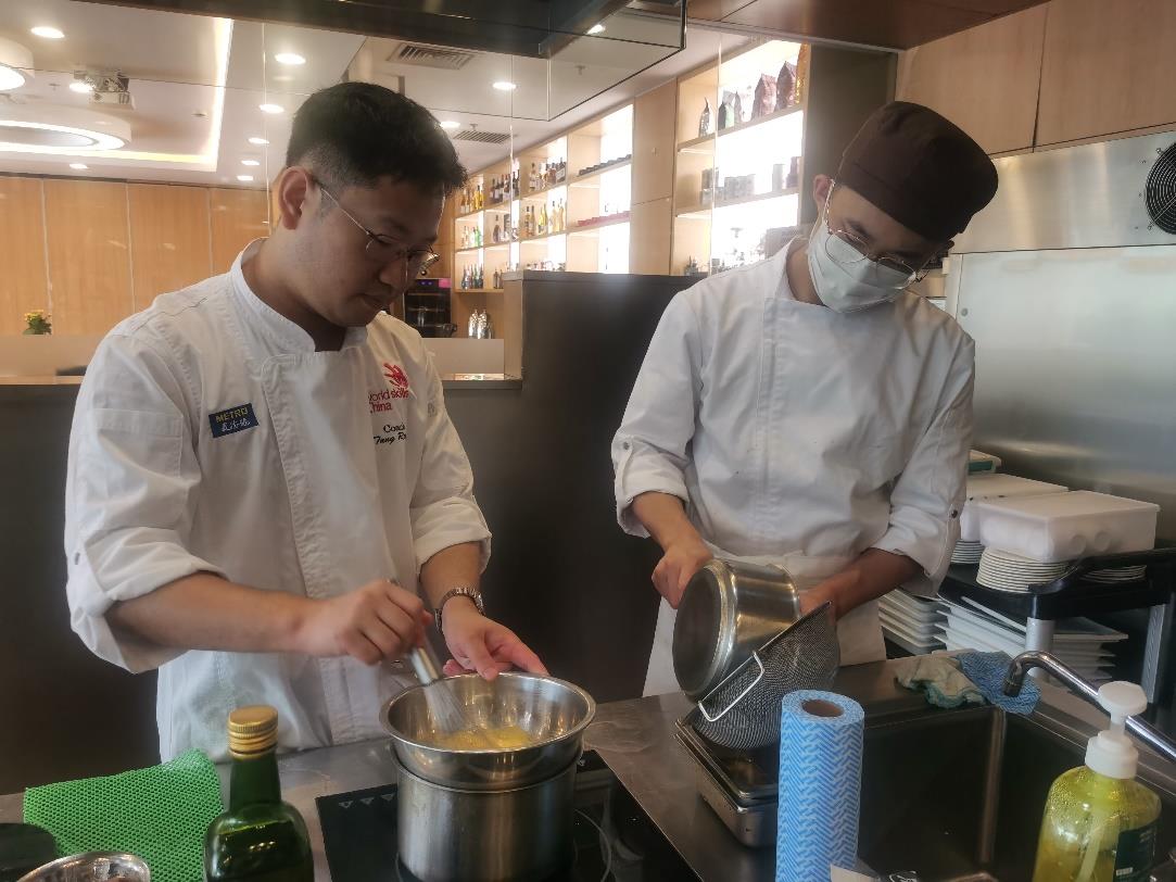 學院加強頂層設(shè)計,完善高技能人才培養(yǎng)激勵機制,確立“技能立校、創(chuàng)新強?!卑l(fā)展戰(zhàn)略,建立技能競賽長效機制。成立了世賽烹飪(西餐)項目基地工作領(lǐng)導小組,由學院黨委書記任組長,院長、副書記任副組長,相關(guān)處室負責人為成員,成立世賽工作辦公室,辦公室設(shè)在教務(wù)處,由西餐學院具體組織實施,溝通研發(fā)團隊和技術(shù)專家團隊,對集訓的組織實施及相關(guān)技術(shù)問題進行研討,確定集訓方案和集訓計劃定期匯報工作進展情況,確保集訓工作高效有序完成。